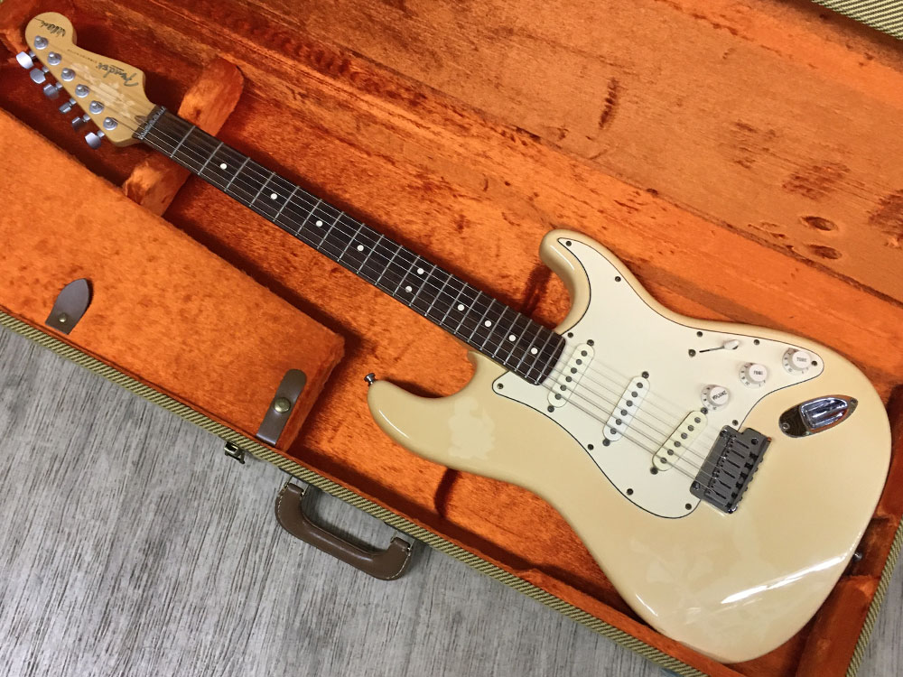 レギュラーライン、ジェフ・ベック・ストラトキャスターT.Ibaraki選定品の中古です。年式は古いのですがあまり弾かれておらず、フレットの減りも殆ど無く良い状態です。ネックは真っ直ぐでトラスロッドも十分に余裕があります。 そのダイレクトなトーンとレスポンスはやはり選定品だけあり、別次元と言えるものです。 ショップセレクトで10%、しかし選定品として選ばれる個体はその1%にも及びません。何が違うのか?私が追い続けるレベルを、生音の段階ですらご理解頂けると思います。シールを貼った状態で長く時間が経過した為、御覧の通りヘッドとボディに大きく色焼けの斑があります。見た目をあまり気にしない方、気軽に弾き倒したい方には手頃な価格なのでお薦めです。機能部分は当店保証が半年有効なので安心です。当然ながら最適にセッティングしベストコンディションでお届けします! 見た目を気にする方は諦めて下さいね。 T.Ibaraki選定品中古特価 SOLD ご質問、ご注文はこちらへ terrys666r@ybb.ne.jp |